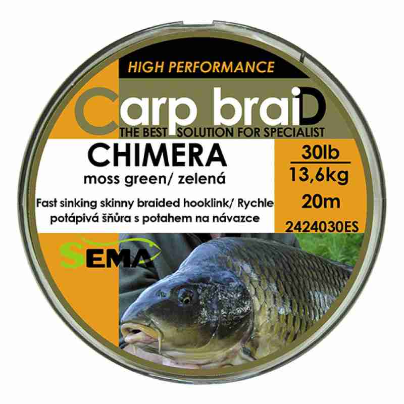Chimera je rychle potápivá šňůra se snadno odstranitelným potahem. Po jeho odstranění vznikne jemná šňůra s dokonalou prezentací nástrahy. Barva zelená Návin 20m
