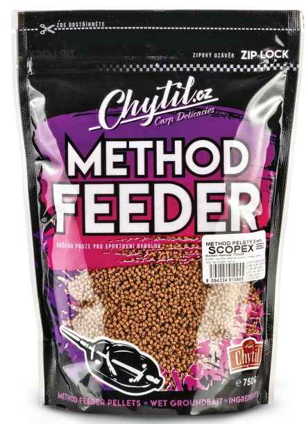Tyto 2mm peletky představují spolehlivý a univerzální typ návnady při lovu na method feeder. Díky své drobné velikosti a atraktivnímu složení jsou vhodné pro přímé použití i jako doplněk ke krmítkovým směsím. Method peletky jsou dnes už neoddělitelnou součástí výbavy feederových rybářů, představují jednu z nejuniverzálnějších a nejpoužívanějších variant. Po vhození do vody okamžitě pracují a uvolňují atraktory.