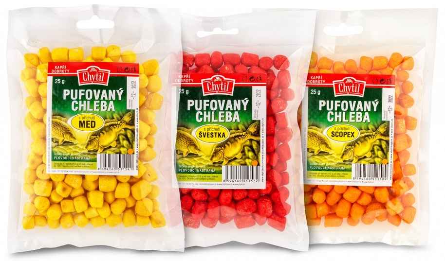 Balení obsahuje různě velké kousky, takže můžete mít nástrahu větší nebo menší, prostě takovou jakou právě potřebujete. Snadno nástrahu přizpůsobíte velikosti a zájmu lovených ryb. Barvy i příchutě můžete kombinovat, což učiní nástrahu ještě zajímavější, a snadno ji můžete umístit i mimo háček, což je skutečně efektivní, protože ta zvýšíte počet bezpečně zaseknutých ryb. Nejčastěji se dočkáte záběrů od kaprů, ale na řece vás může překvapit třeba i pěkný tloušť. Extrudovaný chléb je celoroční nástraha a nemělo by se na něj zapomínat.