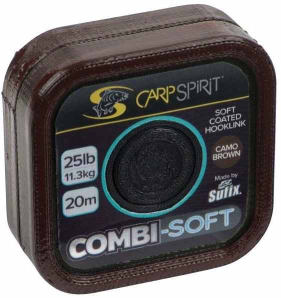 Combi-Soft je prvotřídní, rychle potápivá měkká potahovaná šňůrka, která zajišťuje dokonalou a přirozenou prezentaci nástrahy. Její potah omezuje motání i při dalekých náhozech a snadno ho lze odstranit pomocí nástroje Strip-eaze. Combi-Soft je perfektní materiál pro tvorbu agresivních a funkčních montáží. Po zhotovení návazce jde šňůrka narovnat zahřátím mezi prsty, nebo nad párou z konvičky či hrnce. Návin v délce 20 metrů. Pro Carp Spirit exklusivně vyrábí firma Sufix.