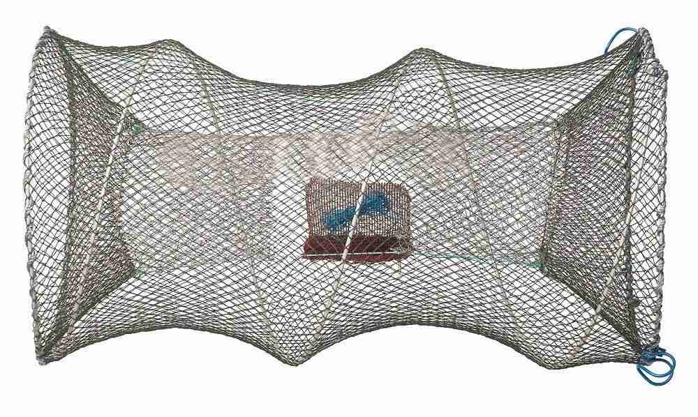Skládací past na lov sladkovodních raků a ryb. Snadné otevírání na konci, 2 x únikové otvory o průměru 28 mm.