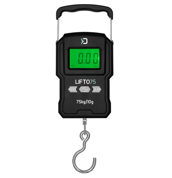 Pokud existuje dokonalá váha pro rybáře, je to určitě LIFTO! Tato nabíjecí digitální váha umožňuje měření hmotnosti v rozmezí od 10g až do 75kg s vysokou přesností. LIFTO má jednoduché ovládání pomocí tří tlačítek. Zapnutí, resp. vypnutí váhy probíhá zatlačením středního tlačítka s označením Power ON. Krátkými stisky tlačítka UNIT lze měnit jednotky hmotnosti (kg, lbs, JIN, oz), zobrazované na displeji. Čtvrtým stisknutím tlačítka UNIT přepnete váhu do formátu teploměru, který vám ukáže aktuální teplotu ve °C. Podsvícení displeje přes jasný den můžete vypnout 2 sekundovým podržením tlačítka UNIT, což přispívá k šetření baterie. Funkce TARE umožňuje vynulování zátěže na háku, což je vhodné pro vážení ryby bez zkreslujícího údaje vážící tašky.