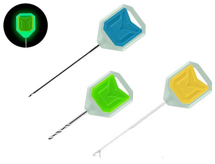 Set T-END Grip 3XF disponuje rukojeťmi z fosforeskujícího plastu, který se v šeru či tmě rozsvítí. Právě tato vlastnost je posouvá o krok před standardní jehly resp. vrtáky a zaručí, že je neztratíte z dohledu ani během nočního lovu.