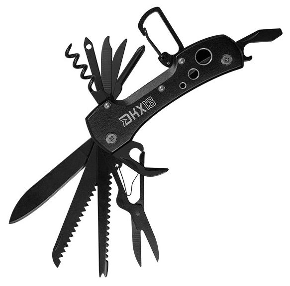 Kompaktní, elegantní ale hlavně užitečný, to jsou přesně ty vlastnosti, které vystihují kapesní nožík KNIFEX13.Číslice 13 v názvu produktu znamená počet funkcí, kterými disponuje. Kromě klasického nožíku KNIFEX13 obsahuje například pilku, otvírák na konzervy a láhve, pilník na nehty, nůžky, plochý a křížový šroubovák a mnoho dalších. Také je osazen praktickou skobou, pro umístění na opasek, tašku nebo kdekoli tam, kde bude vždy po ruce.Každý z těchto nástrojů se po vyklopení automaticky zajistí, avšak je třeba dbát opatrnosti při používání a všechny nástroje je třeba používat ve směru vyklápění nástroje.S funkcemi, které poskytuje kapesní nožík si hravě poradíte s přípravou jídla, odstřihnutím rybářského vlasce či odřezáním nežádoucí větve. Je tedy vhodný pro všechny rybáře, outdoorové nadšence, ale i pravé domácí kutily.Je vyroben z kvalitní nerezavějící oceli, což zaručuje jeho dlouhou životnost.