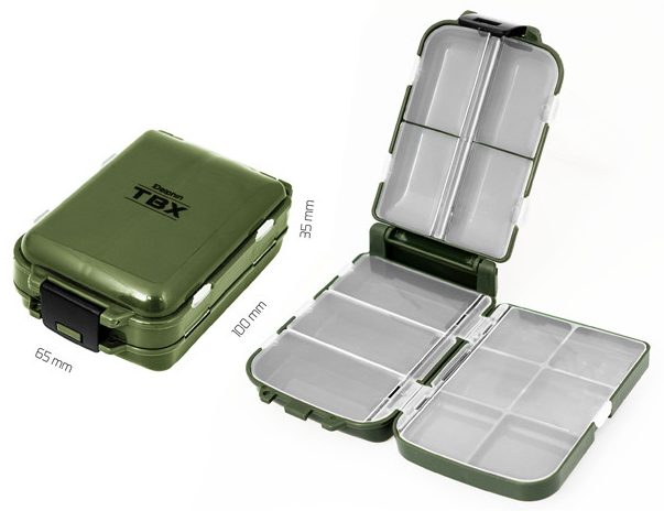 TBX Trio je multifunkčná krabička určená na uloženie rybárskeho príslušenstva. Vyrobená je z transparentného plastu, takže máte vždy prehľad o uložených veciach vo vnútri krabičky. TRIO znamená aj oddelené tri úložné priestory a to jeden z vrchnej časti, druhý zo spodnej a tretí v strede s dômyselným otváraním, vhodným na malé predmety ako háčiky, obratlíky a pod.Technické parametre:Rozmer: 100x65x35mmPočet pevných priehradiek: 13Rozmer priehradky: 6x(2,5x2,5x0,5cm), 4x(2,5x4,2x1cm), 3x(2,7x5,7x1cm)Počet vkladateľných priečinkov: 0