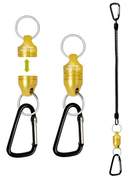 Vysoce praktická pomůcka pro každého rybáře, který chce mít podběrák stále po ruce. Oproti předcházejícímu modelu jsme vylepšili design. Díky výraznější barvě už nebude problém nasměrovat proti sobě 2 protikusy. O všechno ostatní se postará extrémně silný magnet s nosností až 3,5kg na plochu menší než 1cm čtvereční. Tento magnet je připevněný ke karabince ocelovým okem. To dělá z tohoto celku magnetické spojky pro podběrák nepostradatelný doplněk, který je vždy připravený na akci. V balení se nachází zdarma i elastický (10-85cm) pogumovaný popruh, který je možné použít k připnutí jakýchkoliv potřebných věcí, např.: peánu, kleští…