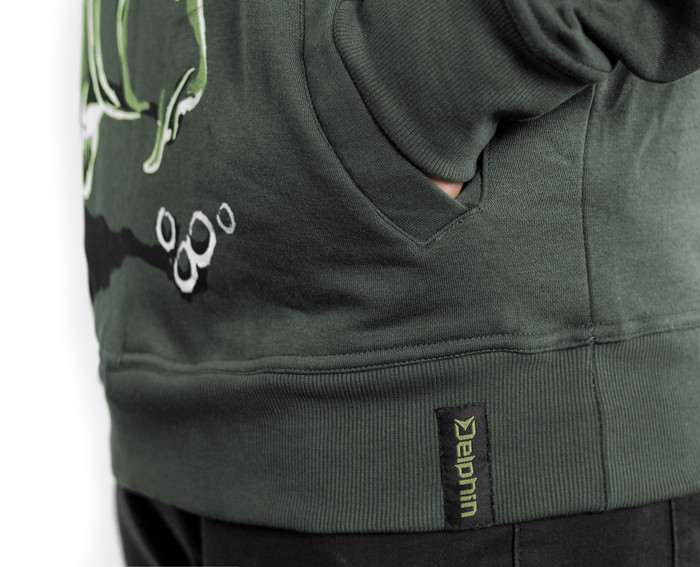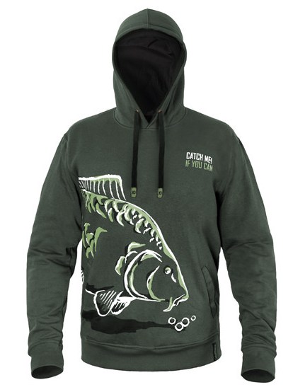 Mikina Delphin CATCH ME! je série stylových mikin, díky kterým se odlišíte. CATCH ME IF YOU CAN (Chyť mě, pokud to dokážeš) s vyobrazením kapra je nevšední kousek do vašeho, ne jen kaprařského šatníku. Malba kapra prochází dokola celého trupu v jeho spodní části. Kapr je zobrazen jako skica či malba při zachování všech důležitých detailů. Ryba je zachycena v situaci, kdy se blíží k hrsti boilies, což je právě ten moment, na který všichni na břehu čekáme. Samotná mikina je vysoké kvality, stejně jako použitý barevný tisk.