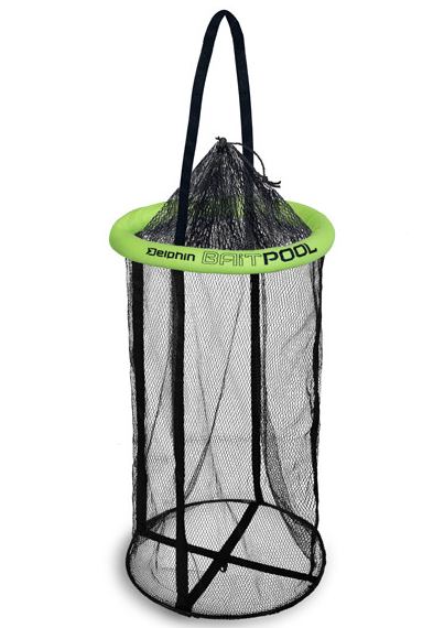 Síťka Delphin BaitPOOL je praktické řešení pro uchovávání nástražních rybek pro lov dravých ryb. Štědré rozměry umožňují přechovávání i větších rybek jako jsou karasi, cejni nebo líni. Kolem obvodu horní části síťky se nachází kruhový plovák, který drží síťku ve svislé poloze. Takové řešení zajišťuje plné rozvinutí síťky ve vodním sloupci a tím vždy dostatek prostoru pro volný pohyb rybek. Výhodou je také rychlé vkládání a vyjímání rybek širokým zatahovacím otvorem.