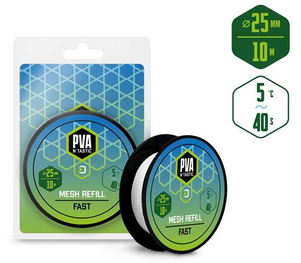 Náhradní PVA puncocha s kratší dobou rozpadu je ideální pro lov behem chladnejších mesícu, nebo pri lovu v melcích hloubkách, kde montáž klesá kratší dobu ke dnu. Jedná se o vysoce kvalitní produkt, pri kterém díky dukladnému pletení nedochází ke svévolnému trhání puncochy a zároven se výborne plní i velmi jemnými cásticemi, címž budete moci spolu s nástrahou poslat do vody i maximálne atraktivní návnadu prímo na montáži.