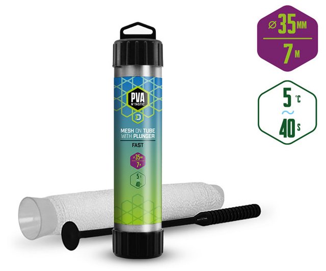 PVA puncocha s kratší dobou rozpadu je ideální pro lov behem chladnejších mesícu, nebo pri lovu v melcích hloubkách, kde montáž klesá kratší dobu ke dnu. Jedná se o vysoce kvalitní produkt, pri kterém díky dukladnému pletení nedochází ke svévolnému trhání puncochy a zároven se výborne plní i velmi jemnými cásticemi, címž budete moci spolu s nástrahou poslat do vody i maximálne atraktivní návnadu prímo na montáži.