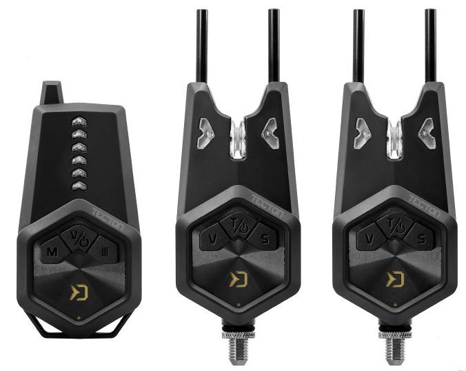 Od prvotního konceptu až po finální produkt prošla opravdu dlouhá doba. Vývoj, konzultování, designování a testování na různých Evropských vodách. To vše předcházelo uvedení sady TECTON na trh. Jedinečný vzhled z dílny designérů značky Delphin se spojil s inovativním vývojem a spolehlivou elektronikou, což v konečném důsledku vytváří vysoce funkční, originální sadu s bezkonkurenční cenou.TECTON disponuje všemi nezbytnými vlastnostmi pro plnohodnotný lov během vašich výprav za kapry. Základem je spolehlivá světelná, zvuková či vibrační signalizace záběru za jakýchkoliv povětrnostních podmínek. Nechybí ani důležité funkce jako možnost nastavení tónu, hlasitosti či citlivosti. Samozřejmostí v tomto případě je také absolutní voděodolnost a excelentní výdrž baterií. Tělo signalizátorů a příposlechu je vyrobeno z pevného plastu, což zaručuje vysokou odolnost vůči mechanickému poškození. Plast je navíc potažen jemnou pogumovanou vrstvou, čímž je velmi příjemný na dotek a vytváří dojem podstatně dražší sady. Signalizátor je vybaven třemi tlačítky. Pomocí tlačítka uprostřed je možné jej zapnout, resp. vypnout. Při delším podržení středového tlačítka se sepne podsvícení záběrového kolečka, což vytváří ve tmě velmi pěkný vizuální efekt a zároveň slouží jako noční dioda, která v noci umožňuje snadnou detekci umístění prutů. Krátkým mačkáním středového tlačítka je navíc možné zvolit jeden z osmi tónů. Pro zpětný záběr, resp. „padák“ budete upozorněni odlišným tónem signalizace. Pomocí tlačítka umístěného na signalizátoru vlevo (V) navolíte požadovanou hlasitost, včetně tichého módu. Tlačítko napravo (S) umožňuje vybrat jednu z 5 úrovní citlivosti.Součástí signalizátorů jsou odnímatelné snag gears, které se postarají o to, aby prut při prudkých záběrech v žádném případě nemohl „vyletět“ ze signalizátoru. V základní sadě 2+1 se nachází spolu s příposlechem červený a modrý signalizátor, ale v případě TECTONU je možné dokoupit až čtyři další barvy (žlutá, zelená, fialová, bílá). To dává možnost pořídit si k sadě signalizátory s barvou diody, jakou preferujete. To ovšem není jediná výhoda širokého spektra barev. Pozornému oku určitě neujde, že na přijímači se nachází až šest diod, což umožňuje spárování šesti různých signalizátorů TECTON na jeden příposlech, kdy různé barvy signalizátorů zajisté oceníte. Samotný příposlech se vyznačuje spolehlivým přijímáním signálu, v závislosti na podmínkách až do vzdálenosti 200 metrů. Disponuje možností nastavení jedné z 8 úrovní hlasitosti a možnosti zapnutí či vypnutí vibrací při záběru. Tón signalizace na přijímači je totožný s tónem, který jste si zvolili na jednotlivých signalizátorech. Pro zpětný záběr, resp. „padák“ budete upozorněni odlišným tónem signalizace. Do detailů propracovaný tvar jej umožňuje svisle položit například na stolek nebo zavěsit za popruh s poutkem (součást balení). Všechna zvolená nastavení signalizátoru i přijímače se uchovávají v paměti.Sada TECTON je napájena pomocí AAA 1,5V baterií (3x pro příposlech, 2x pro signalizátor) a při jejich nízké kapacitě vás signalizátor i příposlech upozorní blikáním v 5 sec. intervalech.Sada je dodávána v praktickém kufříku, který se postará o její bezpečnost během transportu.Technické parametry: Sada 2+1 obsahuje: - 2x Signalizátory záběru - 1x Přijímač - 1x Transportní kufřík - 2x snag gears - 1x poutko na zavěšení - 7x baterie AAA 1,5 V k otestování funkčnosti funkcíPřijímač/funkce - Voděodolný - 8 úrovní hlasitosti, včetně tichého módu (tlačítko V) - 8 různých tónů signalizace (stejný tón jako na signalizátoru) - Vibrační mód (tlačítko “vibrace“) - 6 barevných signalizačních LED diod - Zvolená nastavení uchovává v paměti - Indikace slabé baterie blikáním v 5 sec. intervalech - Párování/vymazání párování (tlačítko M) - Dosah 200m v závislosti na terénu - Napájení 3x1,5V baterie (AAA) Signalizátor/funkce - Voděodolný - 8 úrovní hlasitosti, včetně tichého módu (tlačítko V) - 8 různých tónů signalizace (tlačítko T) - 5 úrovní citlivosti (tlačítko S) - Zvolená nastavení uchovává v paměti - Signalizace zpětného záběru - odlišný tón - Paměťová dioda - svítí nepřetržitě 15 sec. po záběru - Indikace slabé baterie blikáním v 5 sec. intervalech - Podsvícená rolnička - Možnost osazení snag gearů (součást balení) - Vstup pro 2.5mm konektor - Napájení 2x1,5V baterie (AAA)V kufříku sady Tecton navíc naleznete zdarma i set základních baterií. Slouží k otestování modelu a funkcí při koupi produktu. Pro používání na rybách doporučujeme zakoupit nový set baterií.PROTECTED DESIGN - Tento produkt byl kompletně navržen designéry značky Delphin. Jeho design a technické řešení jsou natolik unikátní, že je registrován a chráněn na území celé Evropské unie.