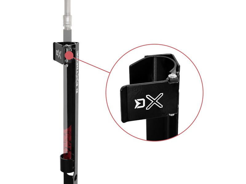 K fixaci sumcového prutu na stojanu slouží robustní klapka v horní části, která zabrání nechtěnému vyskočení prutu při záběru. Spolu s držákem na prut, který je na stojanu osazen pomocí silných svárů, bude nahozený prut na stojanu stabilní za jakýchkoli okolností. Aby se předešlo nechtěnému hromadění vody, na spodku držáku jsou umístěny dva výřezy.