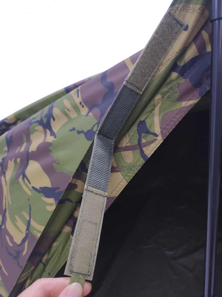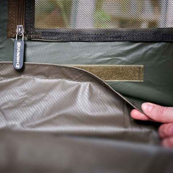 Zadní okna lze otevřít zevnitř pomocí velkých zipů. To znamená, že při náhlém dešti lze bivak zevnitř uzavřít