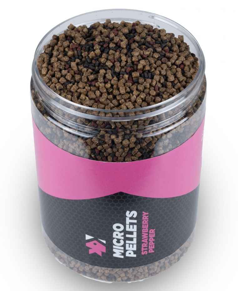 FEEDER EXPERT Micro method pelety jsou vysoce atraktivní mixy malých peletek ve stejných příchutích, jako jsou nástrahy. Jsou vynikající do method feeder krmítek. Mají vysoce atraktivní složení, skvělou chuť a vůni přizpůsobenou pro chytání větších a velkých kaprů či amurů. Protože neuvolňují tak malé drobky jako mixy, jsou peletky ještě účinnější na velké exempláře ryb. Před použitím je zhruba na jednu minutu zalijte vodou. Poté vodu slijte a nechejte 5 až 6 minut měknout. Pak už je možné je vmačkávat do krmítka. Zde vytvoří nadýchaný „kopeček“ návnady, která je neodolatelná, zvlášť v kombinaci s malými průměry Pop-up a Wafters.