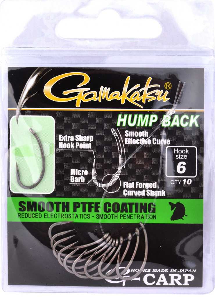Díky speciálnímu SEC tvaru (Hladký efektivní oblouk) se tento háček automaticky otočí směrem ke spodnímu rtu a rychle se zasekne. Speciální naplocho kovaný točený drát dá háčku extra sílu a odolnost. Mikro protihrot je ideální pro rychlé zaháknutí a kromě toho se i snadno vyndavá, čímž snižuje poškození rybí tlamy na minimum. Krátké zarovnání vlasce umožňuje typu Gamakatsu Humpback rychlý zásek. Velmi tenký hrot pak efekt umocňuje. velikosti 2-10 10 ks v sáčku povrchová úprava PTFE