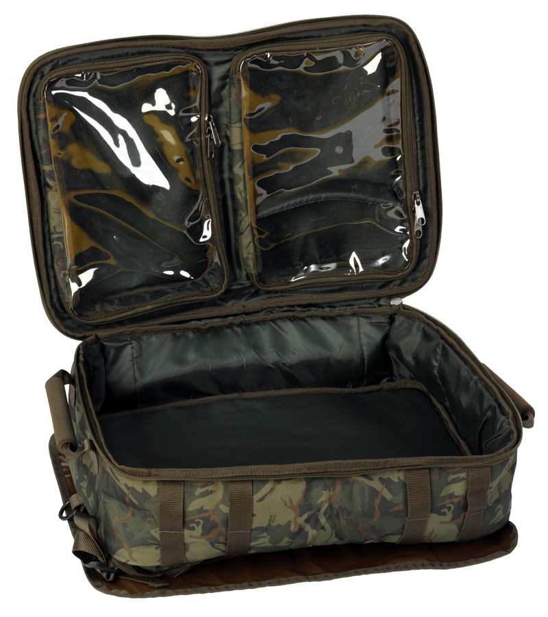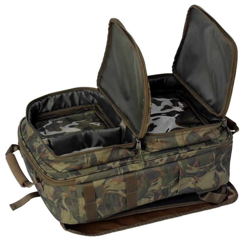 Při vývoji tohoto batohu, bylo dbáno na funkčnost a každý detail, skvělé použití na krátkodobé výpravy, kdy potřebujete mít vše na jednom místě.- V čelní části dvě velké kapsy na zip- Tři oddělené ukládací prostory s transparentním víkem pro přehlednější skladování- Po obou bocích úchyty na 4ks vidliček- Ve spodní části zádové části očko k připevnění rolovací podložky- Komfortně polstrované ramenní popruhy, které jsou stavitelné- Vodě odolný nylonový materiál 210D- Provedení v atraktivním kamuflážovém vzoru- Spodní ochranná část z vyztuženého PVC- Rozměry: 57x37x23cm- Hmotnost: 2,1kgOdkaz na video: http://www.youtube.com/watch?v=lbyIIR_TbMw