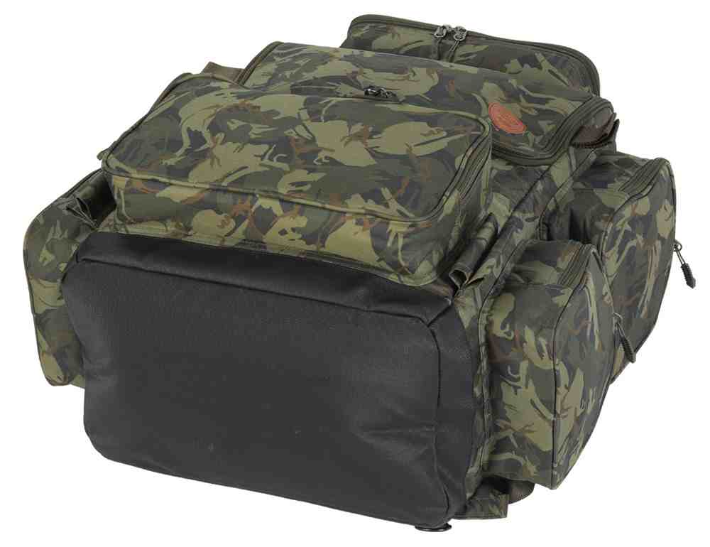 Opravdu obří batoh s objemem 110litrů a velkým množstvím vnějších, tak vnitřních kapes. Luxusní batoh který má v přední části poutka na čtyři zavrtávací vidličky, které díky tomu máte rychle k dispozici. - Velký robustní batoh pro delší výpravy - Pět vnějších kapes po stranách - Robustní ramenní popruhy - Poutka na podběrák a vidličky - Na zádové části dva D kroužky pro uchycení podložky - Vodě odolný materiál v kamuflážovém vzoru - Dno batohu z omyvatelného materiálu - Rozměry: 60cm výška / 55cm šířka / hloubka 35cm