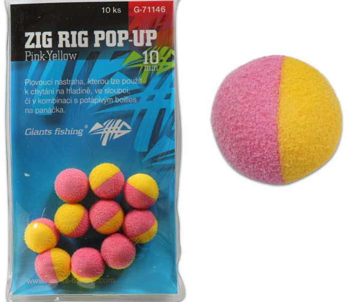 Giants Fishing Zig Rig Pop-Up je umělá plovoucí nástraha vyrobena z EVA pěny, což je nasávající materiál. Tuto nástrahu můžete libovolně dipovat a máčet do atraktorů. Díky své vysoké vzplývavosti snadno nadnese i připojené potápivé boilies. Vysoce kvalitní zpracování s jemně sametovým povrchem, ale přitom za skvělou cenu!