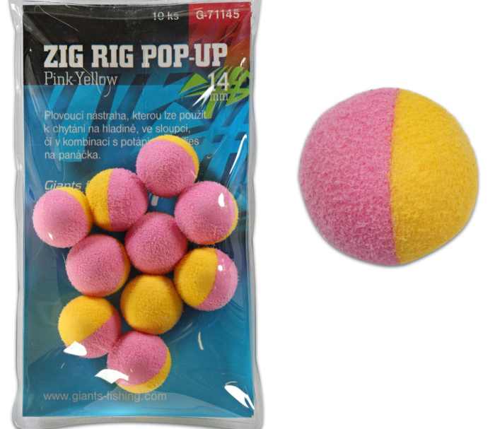 Giants Fishing Zig Rig Pop-Up je umělá plovoucí nástraha vyrobena z EVA pěny, což je nasávající materiál. Tuto nástrahu můžete libovolně dipovat a máčet do atraktorů. Díky své vysoké vzplývavosti snadno nadnese i připojené potápivé boilies. Vysoce kvalitní zpracování s jemně sametovým povrchem, ale přitom za skvělou cenu! Balení obsahu tři kusy od těchto barev černá, oranžová, červená a žlutá.