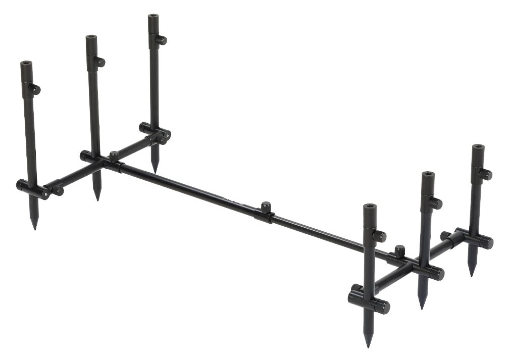 Stylový, kompaktní, šířkově a délkově nastavitelný stojan, který je určen až na tři pruty. Tento stojan je vyroben z lehké hliníkové slitiny s matně černou povrchovou úpravou. Výhodou je že pokud nechcete sestavovat kompletní stojan, tak můžete použití pouze samotné vidličky. Vidličky jsou samozřejmě výškově nastavitelné a mají robustní aretační šroub, který díky jistícímu systému nikdy neztratíte. Stojan lze nastavit délkově 45 až 68 cm, šířkově přední část 34 až 51 a zadní část 31 až 47 cm. Výškový rozsah předních vidliček je 30 až 46 cm a těch zadních 22 až 34 cm. Stojan je dodáván v polstrované tašce, kde má každí díl své oddělené místo. Hmotnost: 1, 146 kg ( včetně obalu ) Přepravní rozměry: 40 x 23 x 6 cm