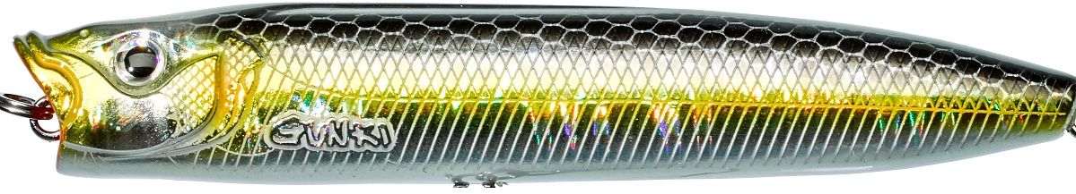 Hladinová nástraha pro lov štik, okounů nebo bolenů. Díky svému rozložení zátěže dobře letí. Střapec peří pro vyšší atraktivitu. Nástrahu oživujte klasickým poppingem. Velice dobře reaguje i na velice rychlé oživování. Některé barvy obsahují UV body. Délka 9,5 cm, váha 13,4 g, potápivost-hladinový, plovoucí.