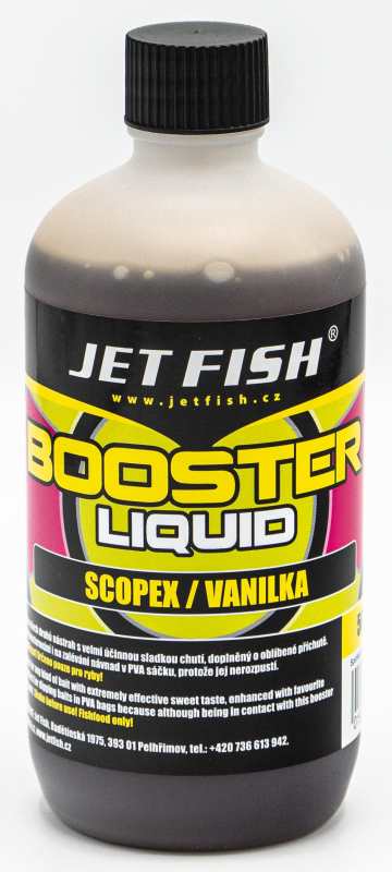 BOOSTER LIQUID je tekutý posilovač do všech druhů nástrah. Můžete jím zatraktivnit boilie, pelety, partikly, ale i vnadící a krmítkové směsi. Hodí se i na zalévání návnad v PVA sáčku, protože PVA, na rozdíl od ostatních výrobků, nerozpustí. Velmi účinná sladká chuť, doplněná o úspěšné a oblíbené příchutě. BOOSTER LIQUID je určen na boosterování ve velkém, navíc za skvělou cenu.
