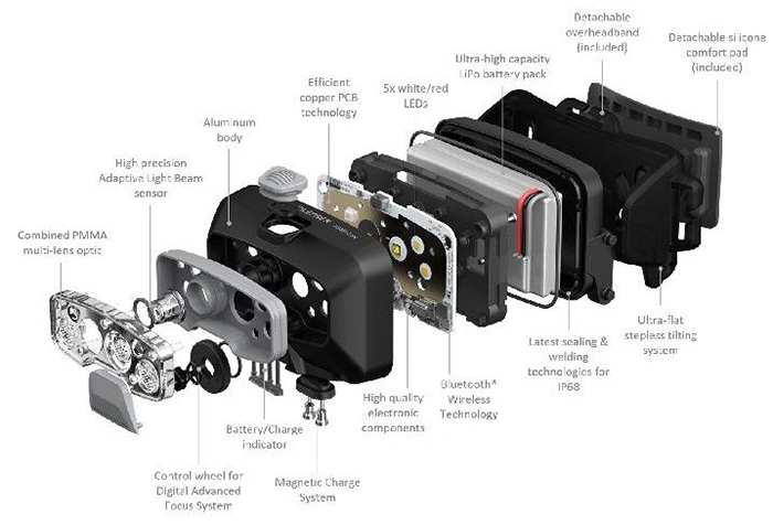 Integrovanou baterii můžete snadno nabíjet pomocí magnetického nabíjecího systému. Samozřejmostí je indikátorem stavu baterie. Čelovka je díky stupni krytí IP68 odolná vůči prachu a potopení do hloubky až 1 metr. Spadnout vám pak může až z výšky dvou metrů bez obavy z poškození.