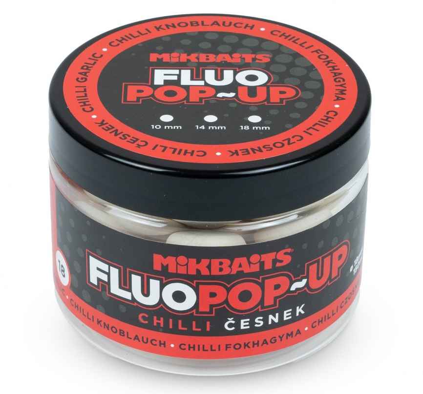 Plovoucí fluo boilie Mikbaits 18 mm jsou velmi účinnou nástrahou, použitelnou jak samostatně, tak v kombinaci s klasickým boilie na panáčka. Jejich výrazná barva zdálky přitahuje pozornost ryb, silné atraktivní aroma láká k záběru. Fluo pop-up Mikbaits mají dlouhodobou schopnost plavat na všech typech montáží pro plovoucí boilie. Jejich zpracování je zcela nadstandardní. Při použití na panáčka 18 mm fluo pop-up k boilie 20 až 30 mm. Všechny příchutě jsou použitelné celoročně, tedy i ve velmi chladných obdobích. Fluo pop-up byste neměli máčet v dipech, zvlášť ne dlouhodobě, jinak by mohly ztratit plovoucí schopnosti. Pro zatraktivnění nebo oživení můžete postříkat Neo sprayem nebo krátce před náhozem pokapat Neo plasmou.