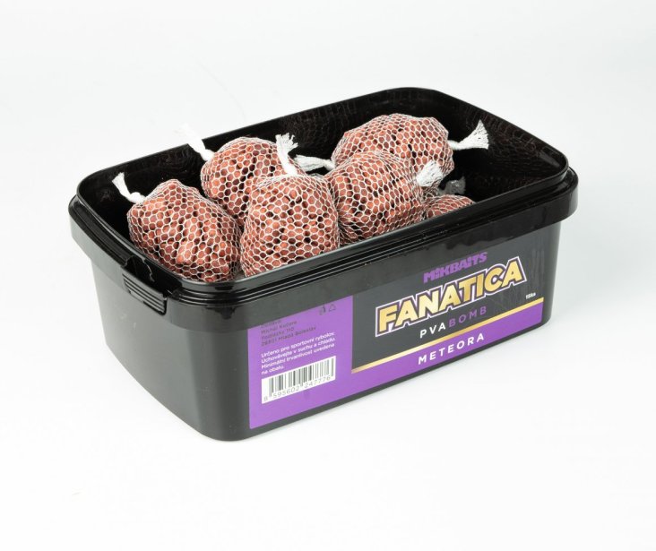 PVA Bomb jsou punčochy z japonského PVA EasyFishing naplněné peletami Fanatica. Šetří nejen váš čas, ale i vaše peníze. Pelety mají rychlý rozpad, aby začaly okamžitě pracovat a přitahovaly ryby. Složení pelet je upraveno tak, aby vyhovovalo ke všem příchutím boilie Fanatica.