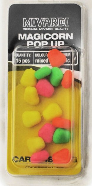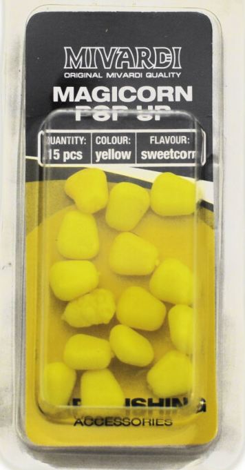 Plovoucí umělá zrnka kukuřice reálného tvaru i velikosti, dostupná v různých příchutích.