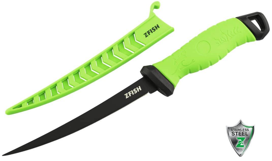 ZFISH Filetovací Nůž Furio Fillet Knife 7"/175mm je nůž opatřený jednoduchou, velice tenkou a pružnou čepelí a je tedy primárně určen k filetování ryb. Čepel je zhotovena z kvalitní nerezové oceli s černou povrchovou úpravou a je precizně dílensky zpracovaná a nabroušená. Nůž se může také pochlubit pogumovanou ergonomickou rukojetí pro pohodlný, ale hlavně bezpečný úchop. Nůž je dodáván s pevným plastovým pouzdrem pro bezpečné uložení a transport. Rukojeť i pouzdro jsou provedeny ve fluo zelené barvě, takže nůž nejen dobře vypadá, ale jen tak se Vám neztratí.